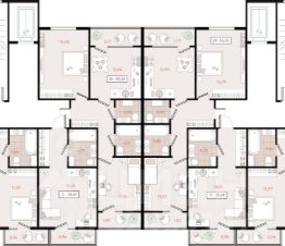 Зеленая территория с зонами отдыха. Детские и спортивные площадки. Дома до 8 этажей.