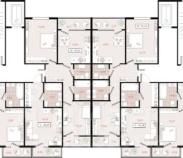 Зеленая территория с зонами отдыха. Детские и спортивные площадки. Дома до 8 этажей.