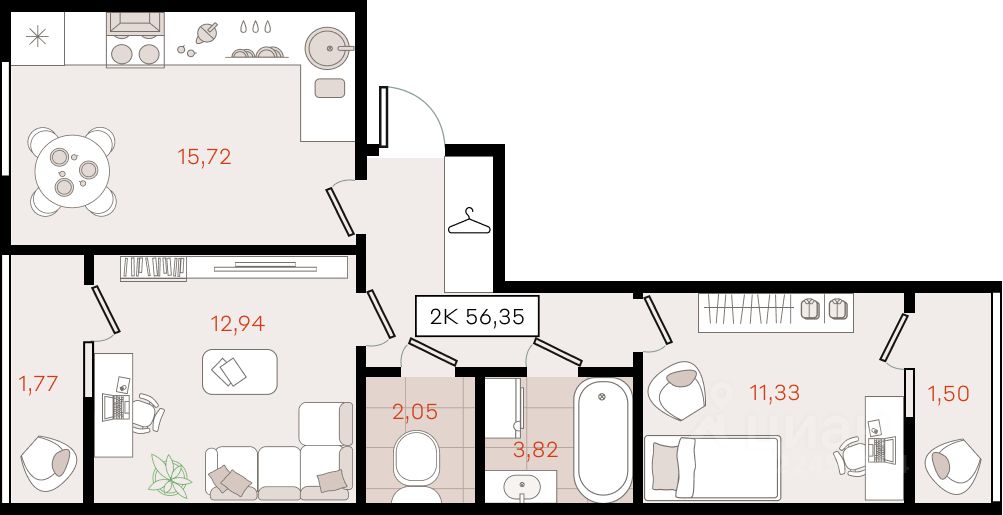 56,35 м²