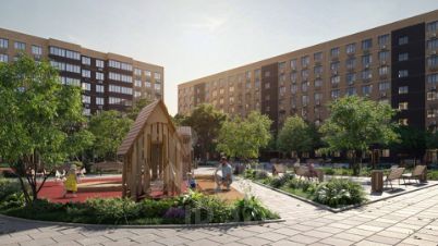 Зеленая территория с зонами отдыха. Детские и спортивные площадки. Дома до 8 этажей.