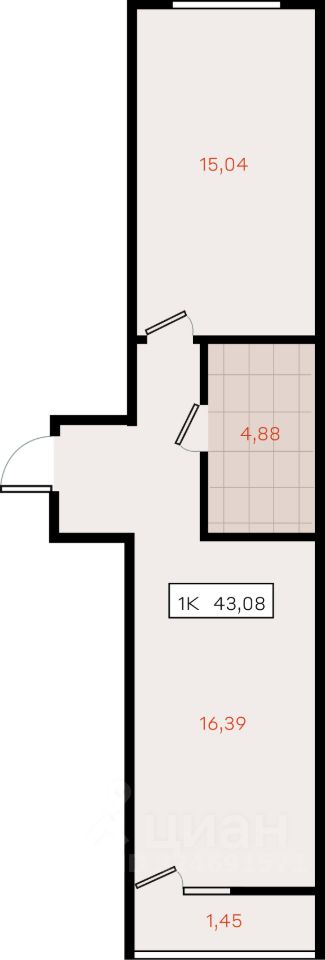 43,08 м²