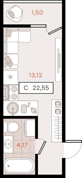 22,55 м²