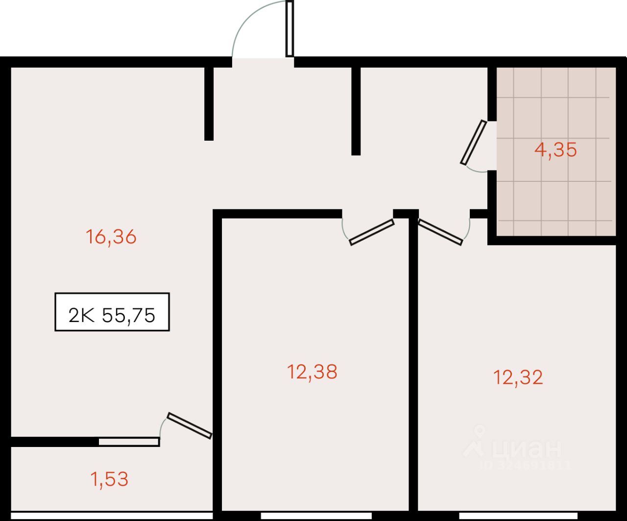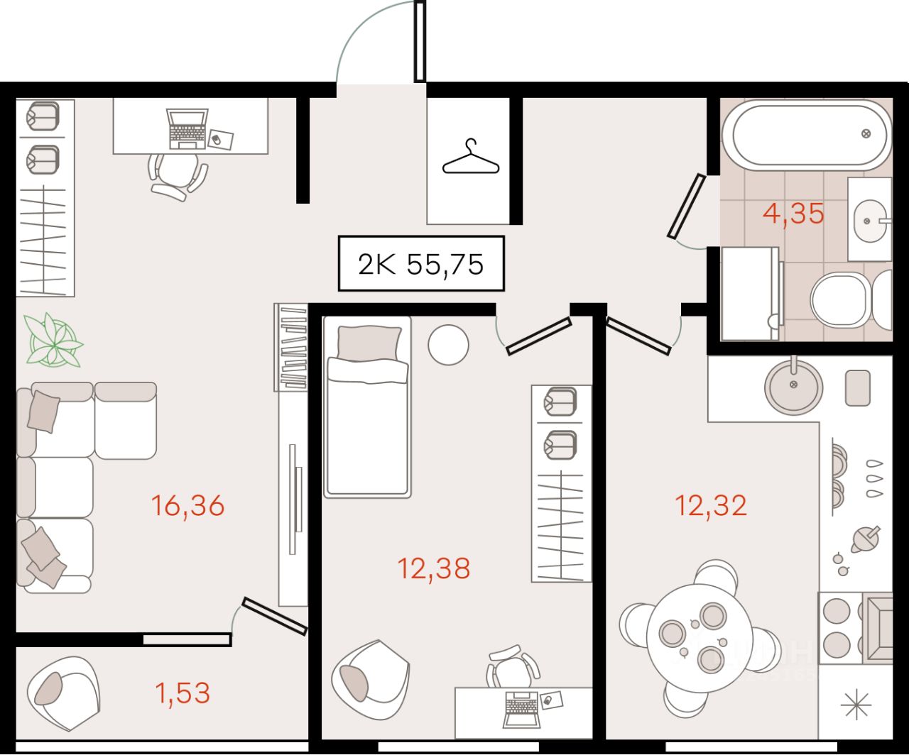 55,75 м²