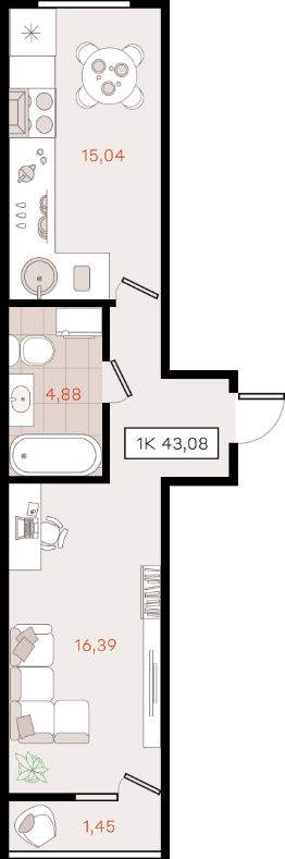 43,08 м²