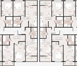 Зеленая территория с зонами отдыха. Детские и спортивные площадки. Дома до 8 этажей.