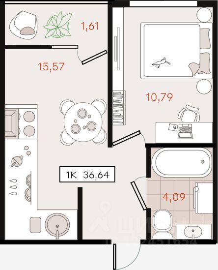 36,64 м²