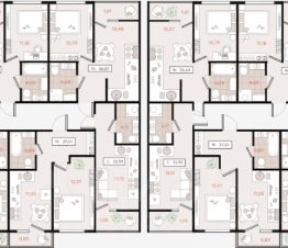 Зеленая территория с зонами отдыха. Детские и спортивные площадки. Дома до 8 этажей.