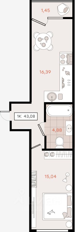 43,08 м²