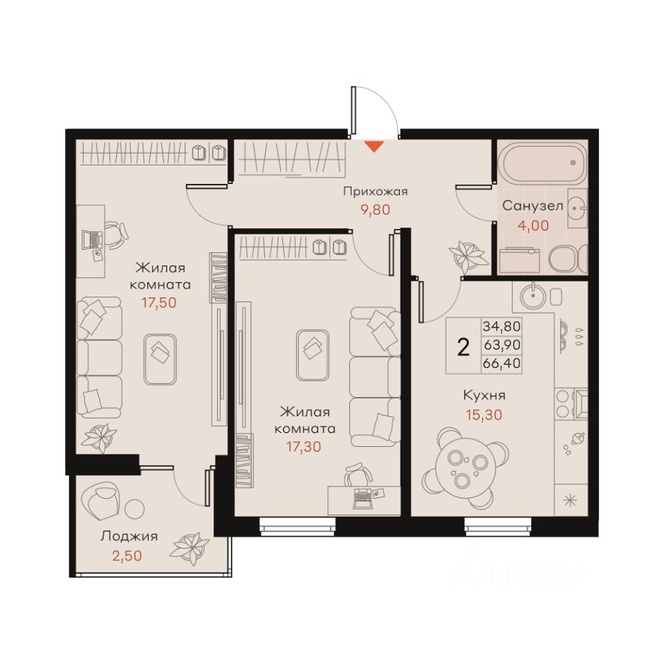 Общая площадь66,4 м²