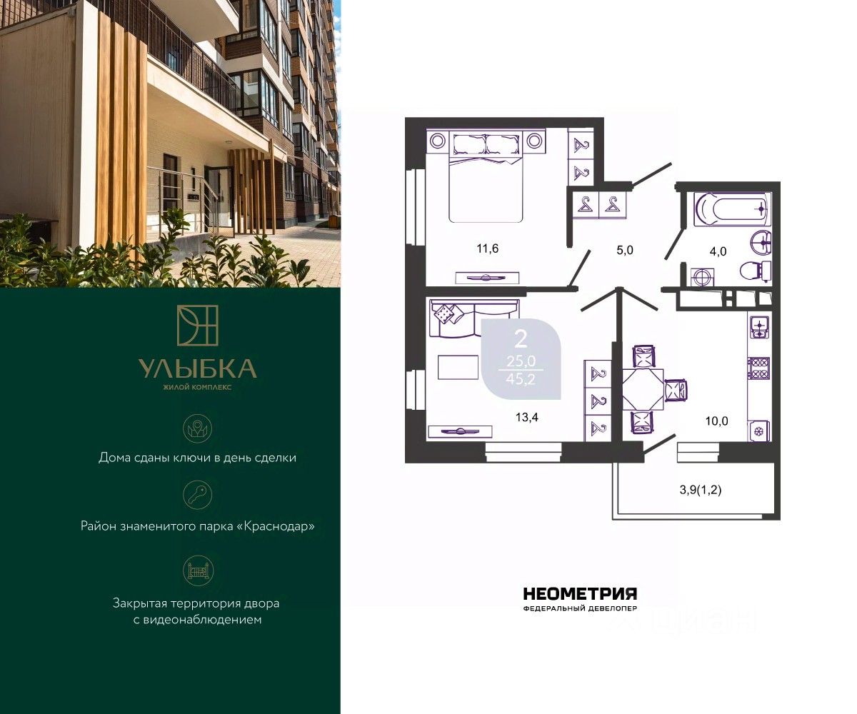 Продается квартира в жилом комплексе "Улыбка" от федерального девелопера "Неометрия". Все дома сданы, ключи в день сделки.