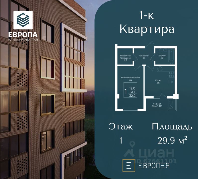 Клубный квартал Европа — уютный жилой район, гармонично сочетающий в себе яркие дизайнерские решения, прекрасную экологию и благоустроенные общественные пространства. Расположен в уникальной локации рядом с культовой "Немецкой Деревней". Всего за несколько минут вы сможете прогуляться до живописного Лебединого озера, площади с фонтаном и других знаковых мест этого уютного и развитого района. На территории квартала созданы все условия для комфортной жизни: развитая транспортная инфраструктура — как для владельцев автомобилей, так и для тех, кто предпочитает общественный транспорт. Внутри комплекса вас ждут современные детские и спортивные площадки, зоны отдыха и безопасные прогулочные маршруты. В районе установлена система видеонаблюдения, что гарантирует высокий уровень безопасности. Квартиры с смарт-планировками предоставляют полную свободу для воплощения ваших идей. Создайте пространство, отражающее ваш стиль и потребности, наслаждайтесь комфортом и индивидуальностью в каждом уголке вашей новой квартиры. Звоните прямо сейчас и станьте частью этого современного, безопасного и комфортабельного жилого квартала "Европа". Ваша новая квартира ждет именно вас! Стоимость является предварительной и может меняться в зависимости от выбранной ипотечной программы и дополнительных опций. Для уточнения стоимости необходимо обратиться в отдел продаж ГК "Европея".