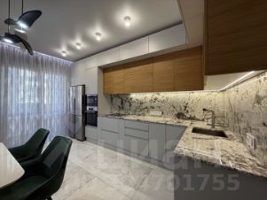 В квартире выполнен качественный дизайнерский ремонт: стены - покраска и декоративный шпонированный стиль с подсветкой, кухня - покраска и декоративная плитка , кварцвиниловые и керамогранитные полы, в кухне, санузле и прихожей комфортный теплый пол.