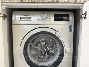Гардеробная оборудована мебелью, где можно удобно разместить все необходимые вещи.