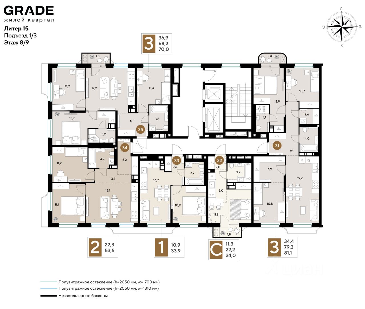Срок сдачи: 4 кв. 2028, общей площадью 33.9 кв.м., на 8 этаже.