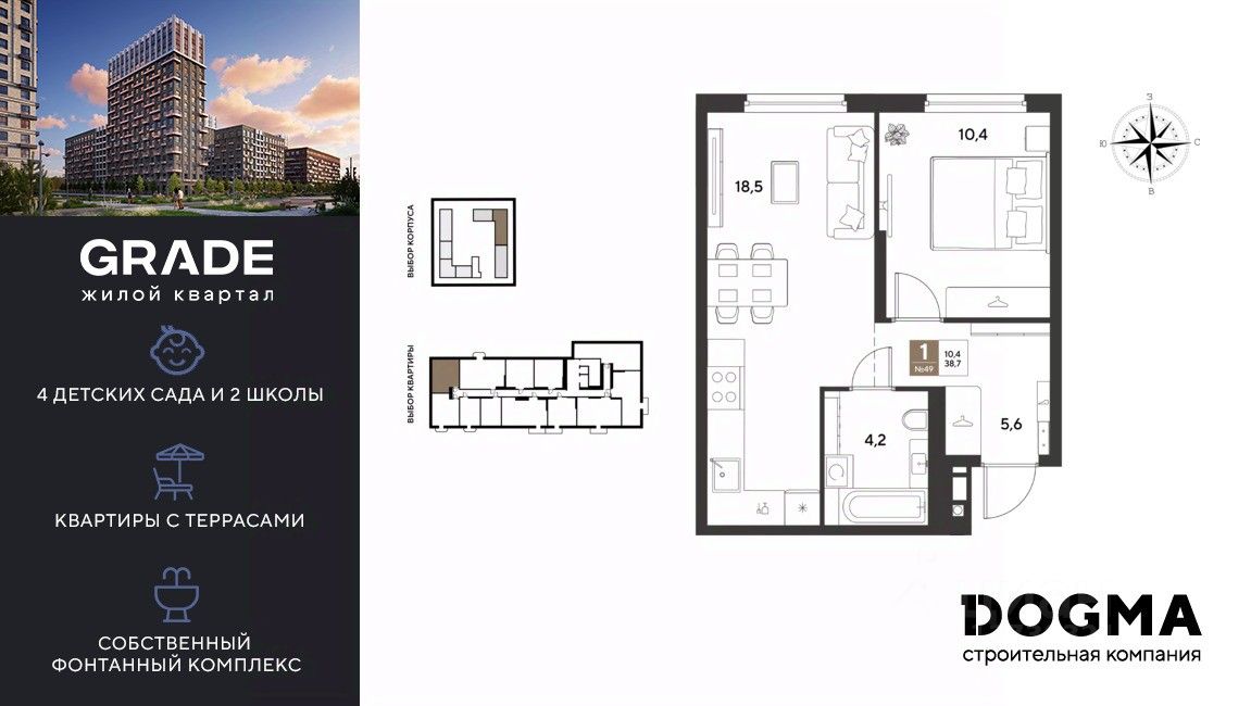 В продаже 1-комнатная квартира от застройщика! ЖК GRADE г. Краснодар, Литер 15