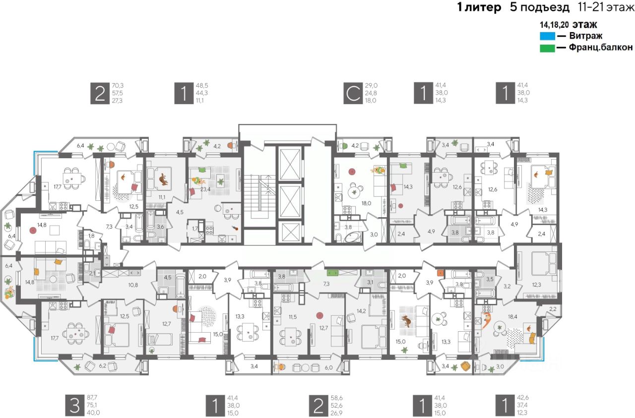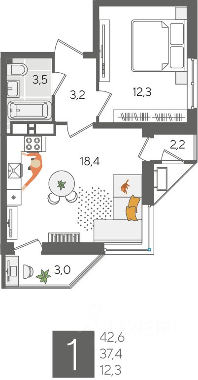 В продаже 1-комнатная квартира от застройщика! ЖК "Рекорд" 2 очередь, г. Краснодар, Литер 1 Срок сдачи: 4 кв. 2026, общей площадью 42.6 кв.м., на 20 этаже.