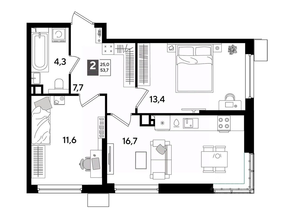 В продаже 2-комнатная квартира от застройщика! Мкр. "DOGMA PARK" г. Краснодар, Литер 30 Срок сдачи: 3 кв. 2027, общей площадью 53.7 кв.м., на 6 этаже.
