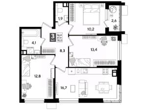 В продаже 3-комнатная квартира от застройщика! Мкр. "DOGMA PARK" г. Краснодар, Литер 33 Срок сдачи: 3 кв. 2027, общей площадью 70 кв.м., на 6 этаже.