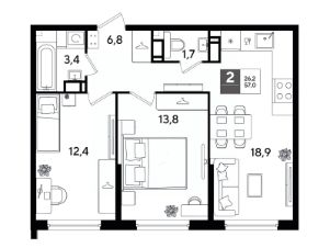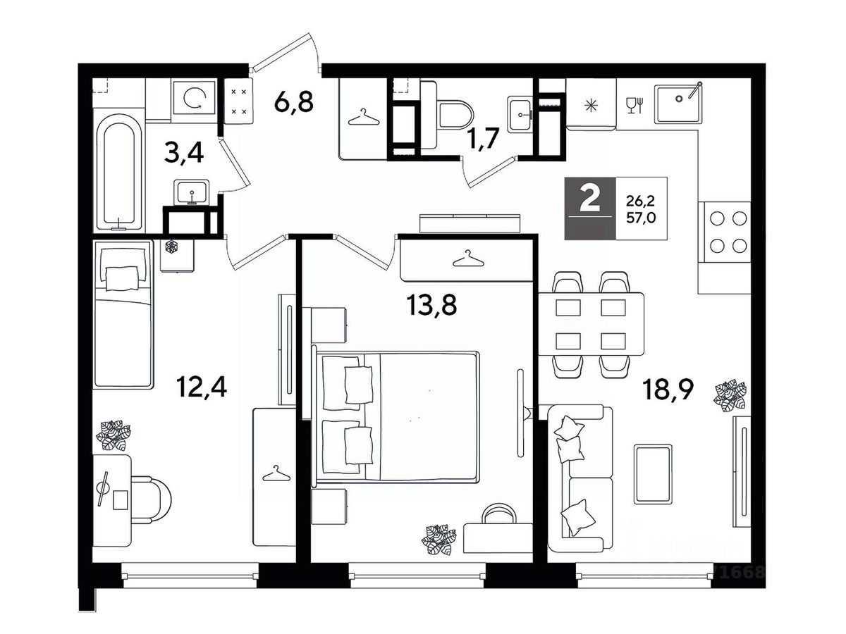 В продаже 2-комнатная квартира от застройщика! Мкр. "DOGMA PARK" г. Краснодар, Литер 24 Срок сдачи: 4 кв. 2027, общей площадью 57 кв.м., на 13 этаже.