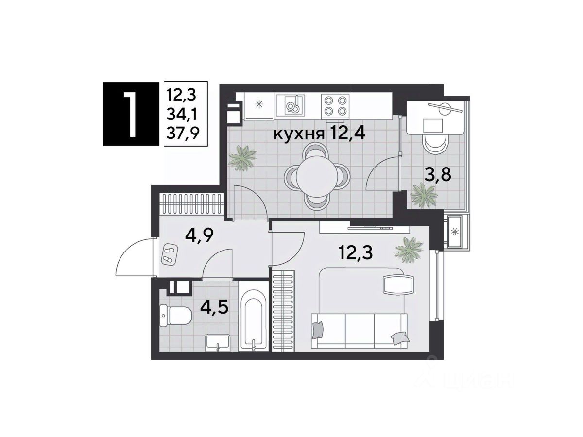 Срок сдачи: 2 кв. 2026, общей площадью 37.9 кв.м., на 3 этаже.