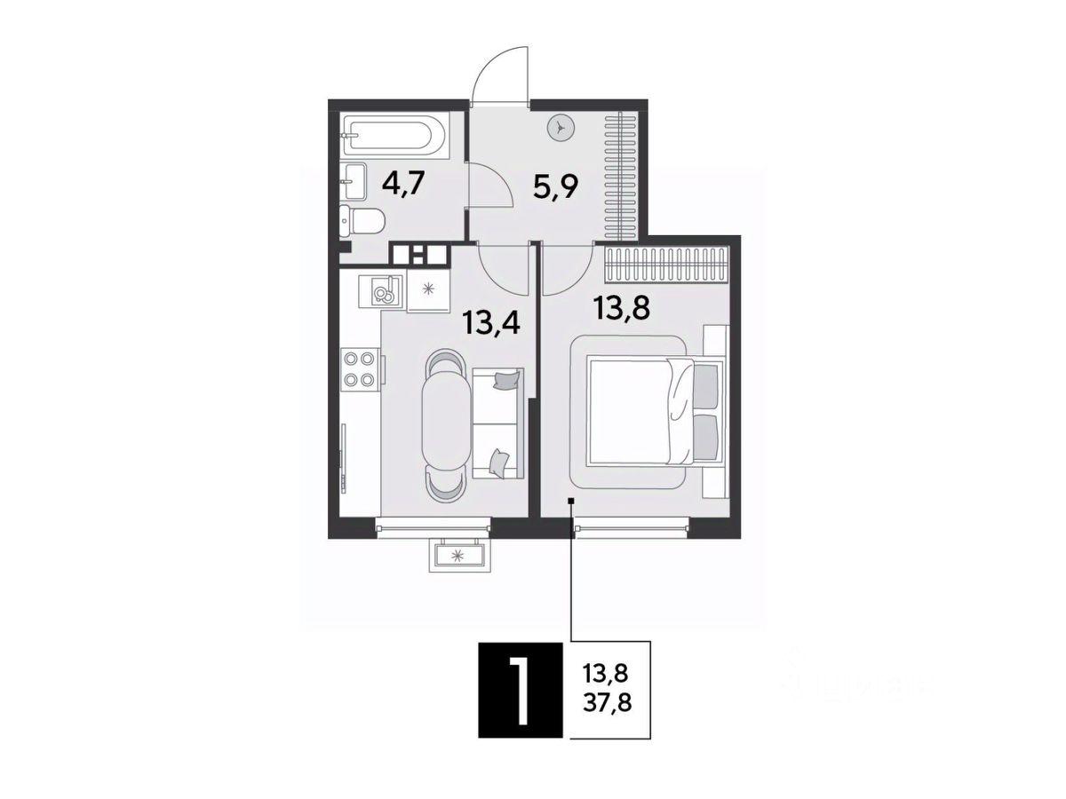 Срок сдачи: 2 кв. 2026, общей площадью 37.8 кв.м., на 6 этаже.