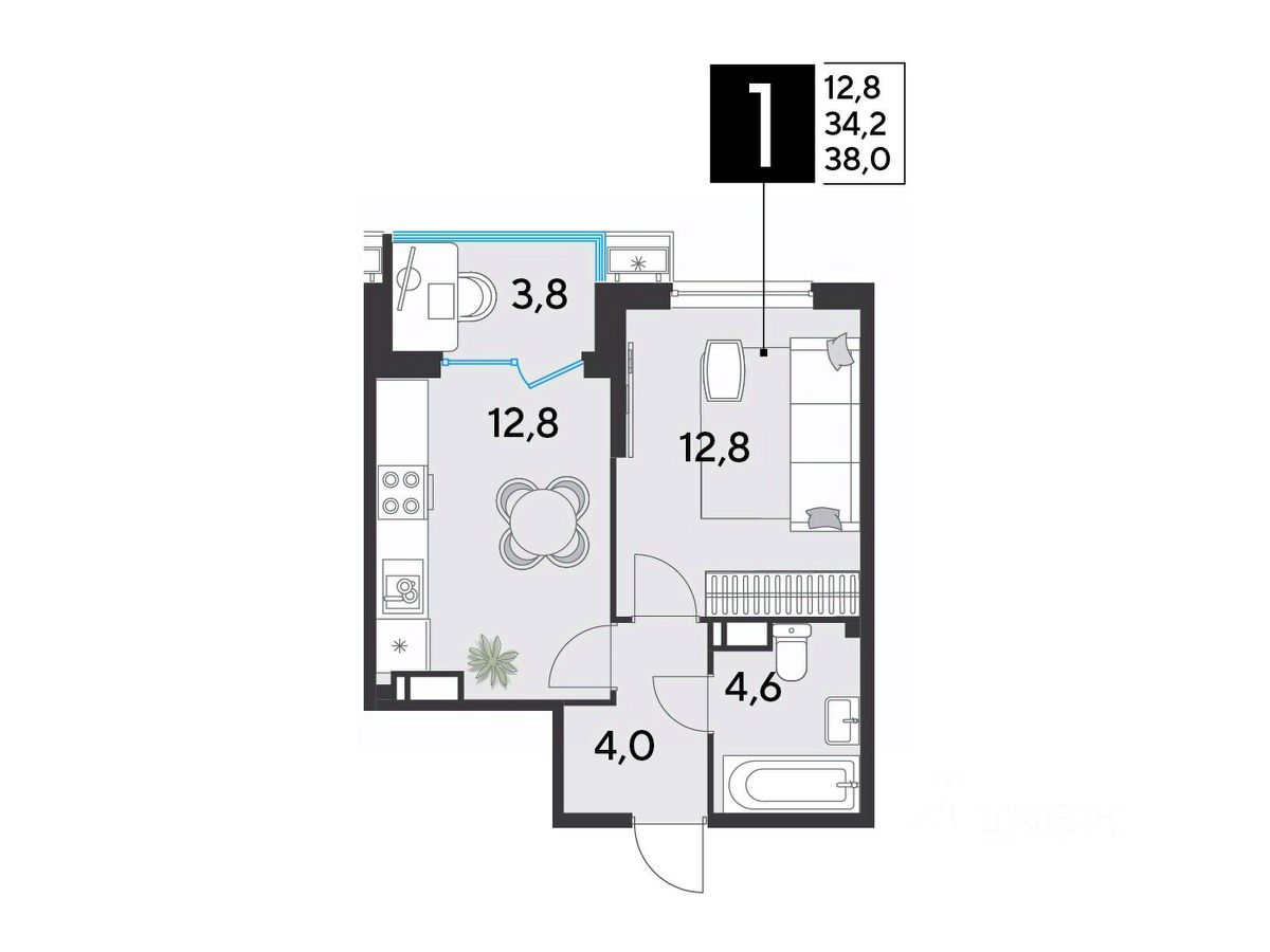 Срок сдачи: 2 кв. 2026, общей площадью 38 кв.м., на 14 этаже.