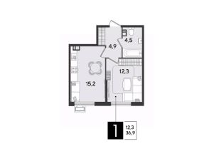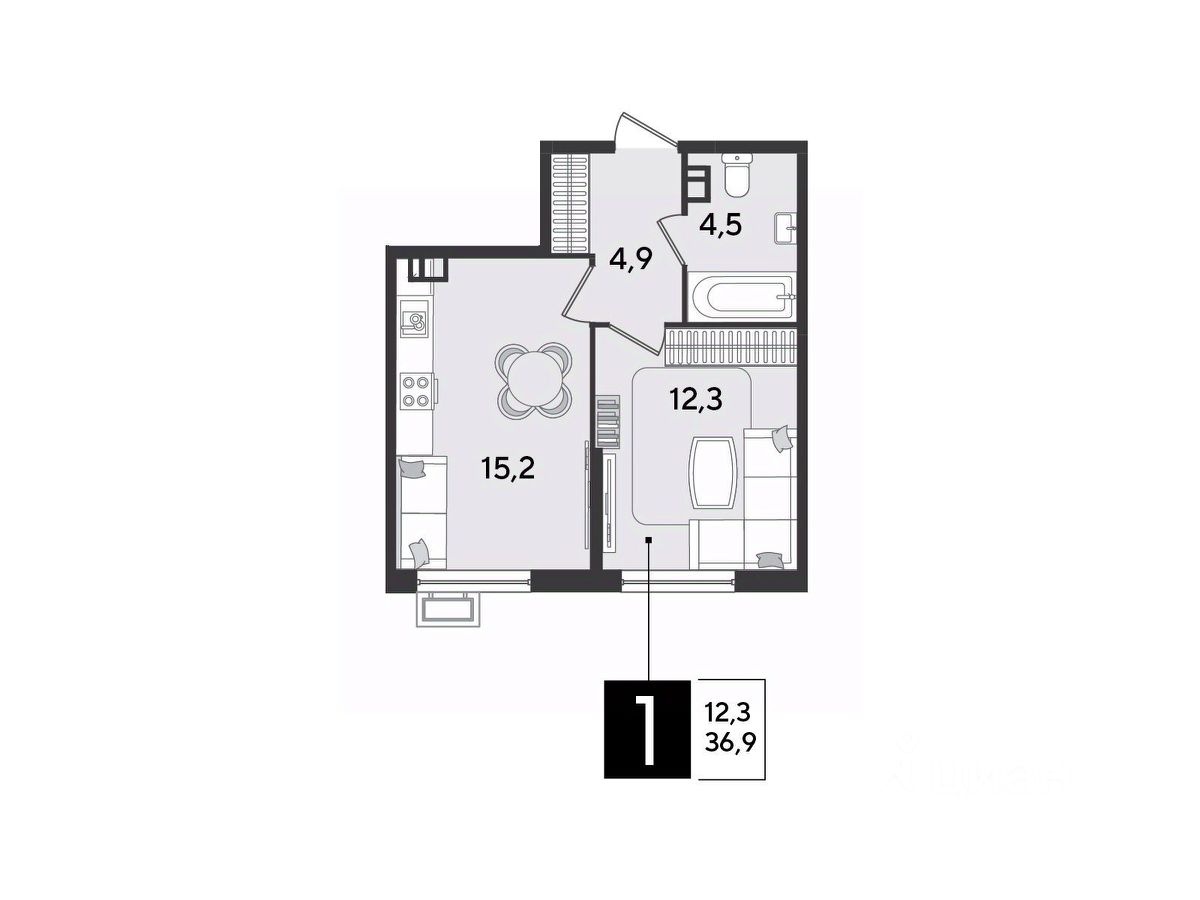 Срок сдачи: 2 кв. 2026, общей площадью 36.9 кв.м., на 9 этаже.
