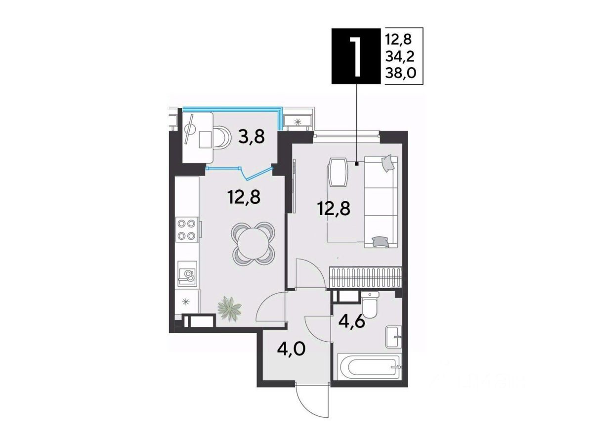 Срок сдачи: 2 кв. 2026, общей площадью 38 кв.м., на 14 этаже.
