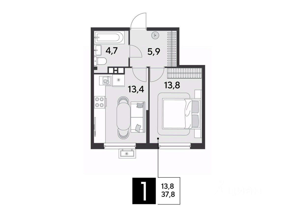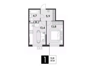 Срок сдачи: 2 кв. 2026, общей площадью 37.8 кв.м., на 3 этаже.