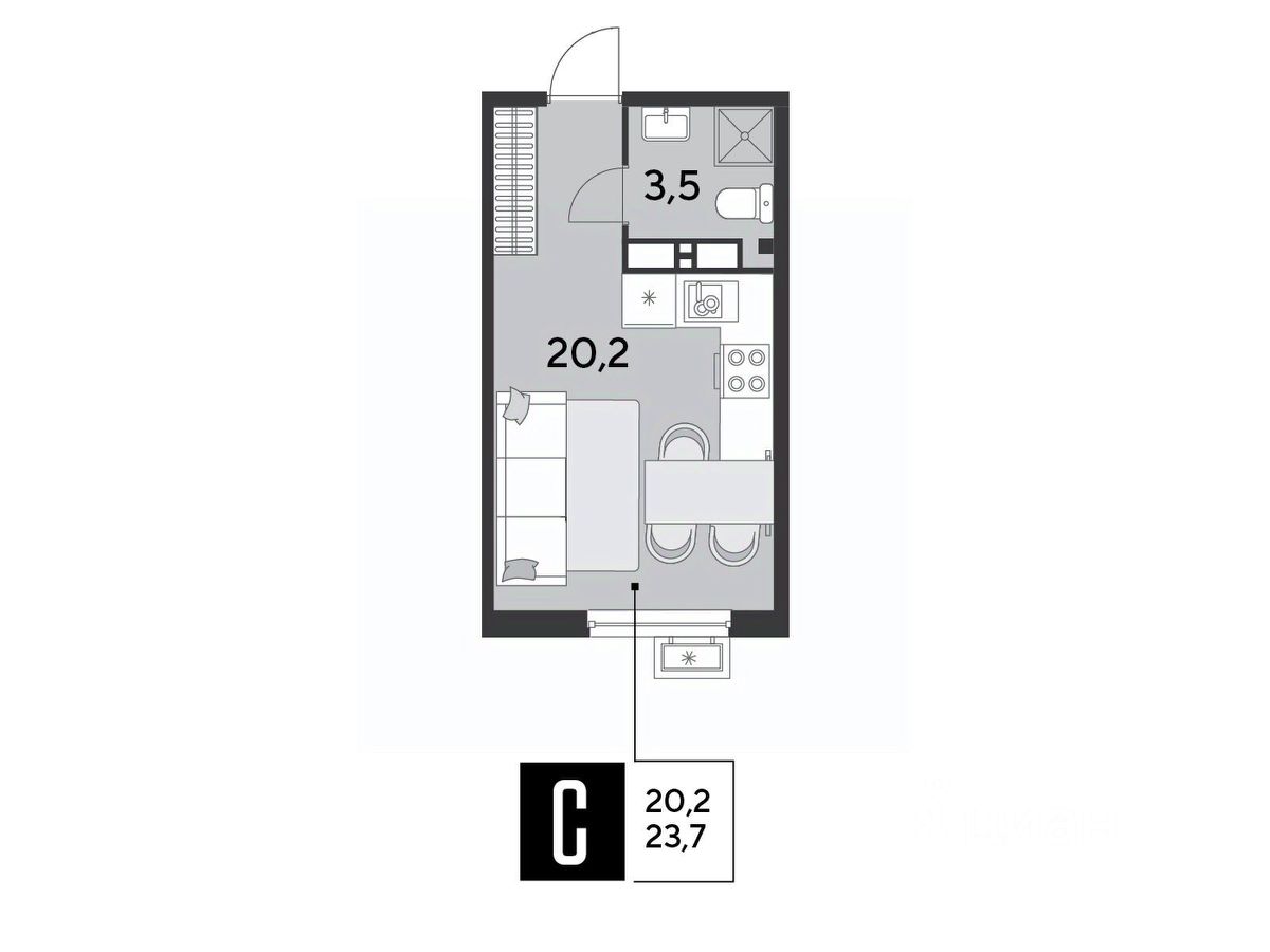 Срок сдачи: 2 кв. 2026, общей площадью 23.7 кв.м., на 18 этаже.