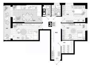 В продаже 3-комнатная квартира от застройщика! Мкр. "Самолет" 5 очередь, г. Краснодар, Литер 28 Срок сдачи: 4 кв. 2024, общей площадью 78.4 кв.м., на 6 этаже.