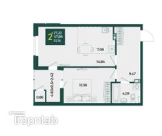 В продаже стильная Евро -2'комнатная квартира с большой кухней 21.92м2 с выходом на лоджию