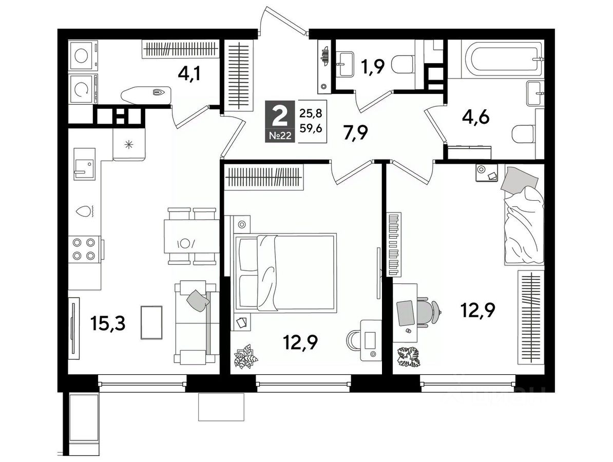 В продаже 2-комнатная квартира от застройщика! Мкр. "DOGMA PARK" г. Краснодар, Литер 17 4 кв. 2027, общей площадью 59 кв.м., на 8 этаже.