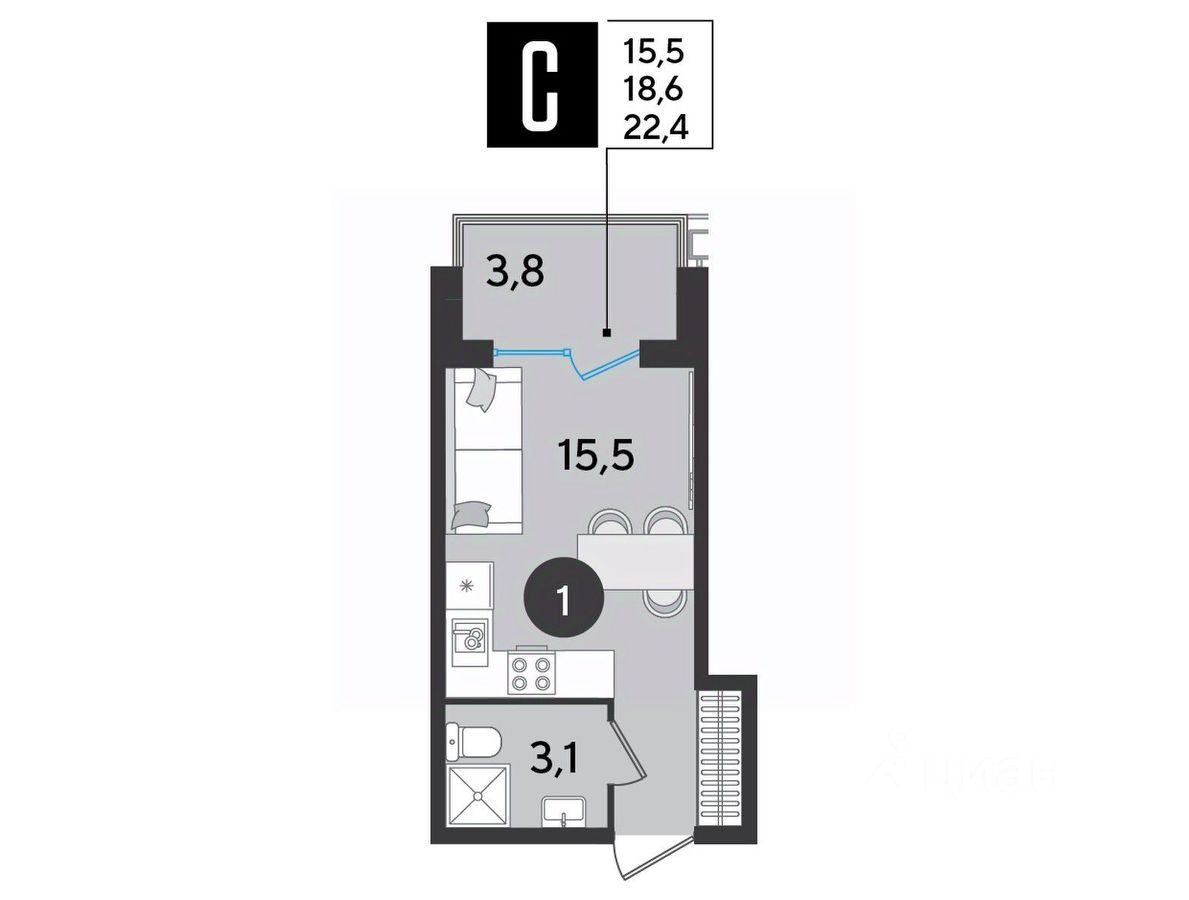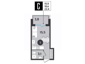 2 кв. 2026, общей площадью 22.4 кв.м., на 2 этаже.