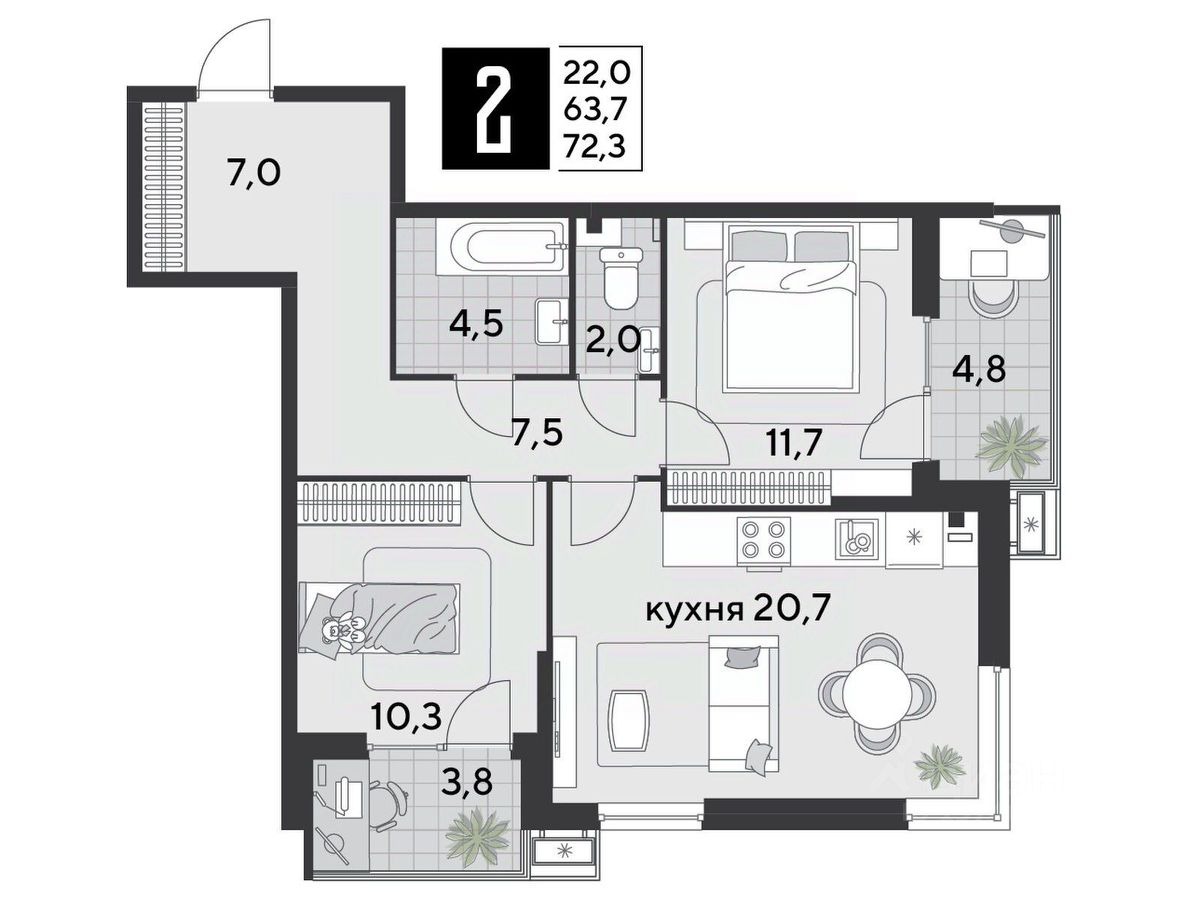 1 кв. 2026, общей площадью 72.3 кв.м., на 9 этаже.