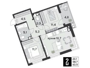1 кв. 2026, общей площадью 63.5 кв.м., на 4 этаже.
