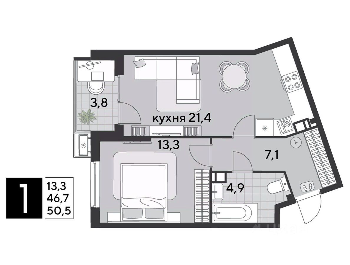 1 кв. 2026, общей площадью 50.5 кв.м., на 7 этаже.