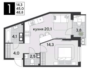 1 кв. 2026, общей площадью 48.8 кв.м., на 3 этаже.