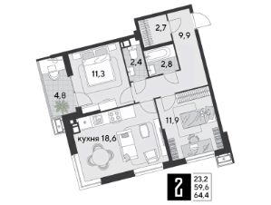 1 кв. 2026, общей площадью 64.4 кв.м., на 8 этаже.