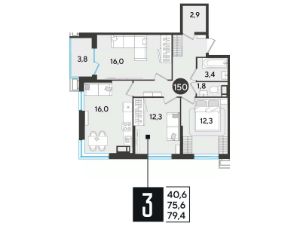 1 кв. 2026, общей площадью 79.4 кв.м., на 13 этаже.