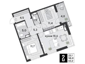 1 кв. 2026, общей площадью 63.2 кв.м., на 5 этаже.
