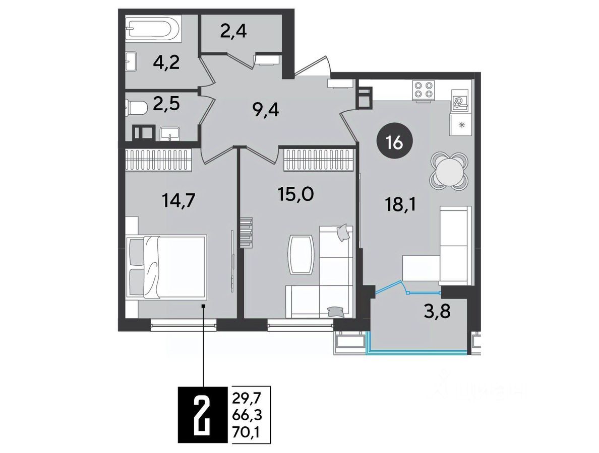 1 кв. 2026, общей площадью 70.1 кв.м., на 8 этаже.