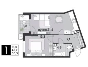 1 кв. 2026, общей площадью 50.5 кв.м., на 8 этаже.