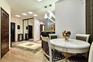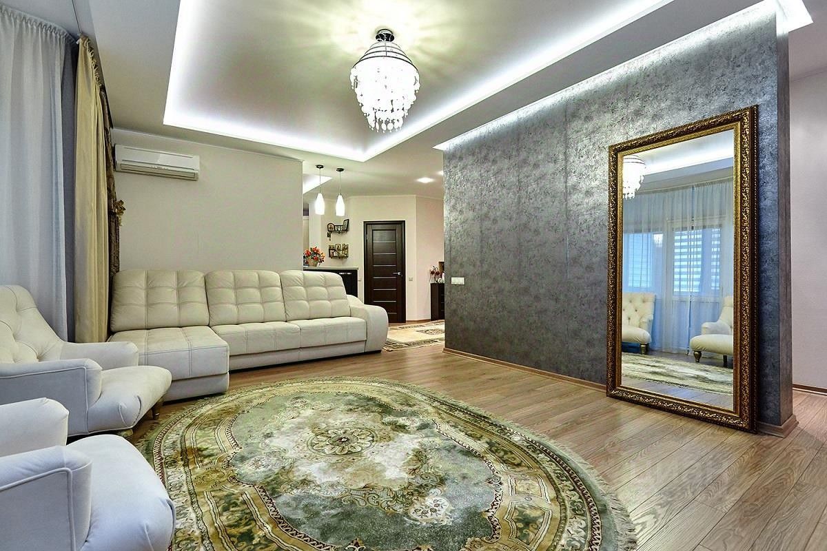 Просторная кухня-гостиная полностью оборудована техникой, гостевая зона с огромным диваном располагает к дружескому общению и совместному просмотру телевизора. А в большой спальне много воздуха и очень уютно. В квартире есть две обустроенные лоджии, функциональная кладовая, гардероб. Всё продумано до мелочей. Все окна квартиры выходят на красивую прогулочную аллею.
