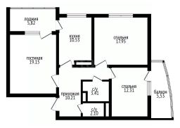 Удобная планировка. Две спальни и гостиная, которая тоже может стать спальней при необходимости. Выход на просторную лоджию из кухни и гостиной, на лоджии барная стойка, открывается красивый вид на город.
