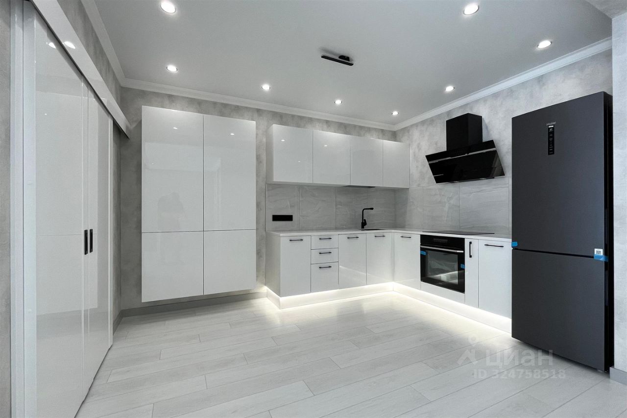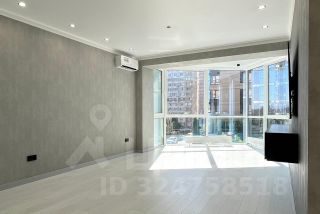 В квартире витражное остекление и дорогой качественный ремонт. Кухня выполнена на заказ с фурнитурой Blum и каменной столешницей, вся техника новая. В ванной комнате использован премиальный керамогранит, установлена каменная ванна Jacob Delafon.