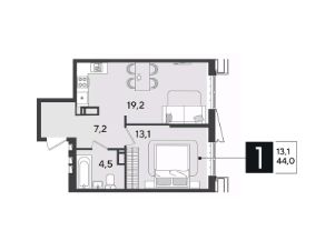 Срок сдачи: 1 кв. 2026, общей площадью 44 кв.м., на 18 этаже.