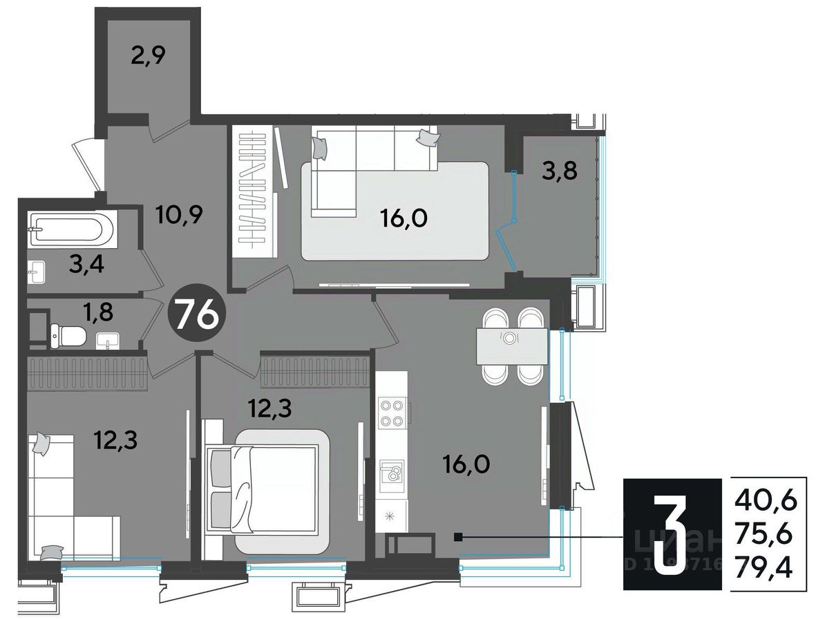 Срок сдачи: 1 кв. 2026, общей площадью 78.9 кв.м., на 10 этаже.