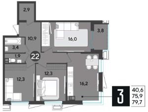 В продаже 3-комнатная квартира от застройщика! ЖК "Парк Победы 2", г. Краснодар, Литер 16