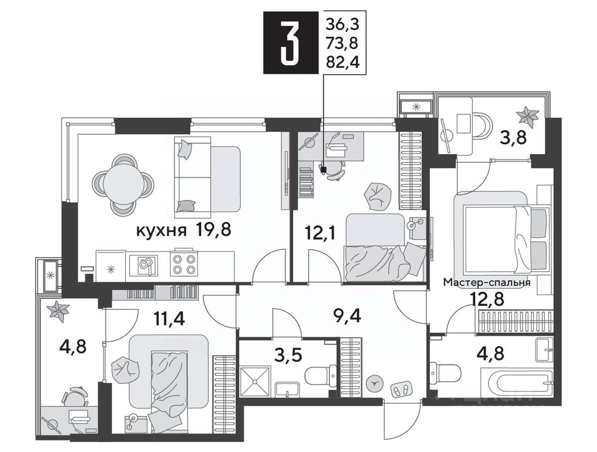 •Квартиры с мастер-спальнями и отдельными гардеробными
